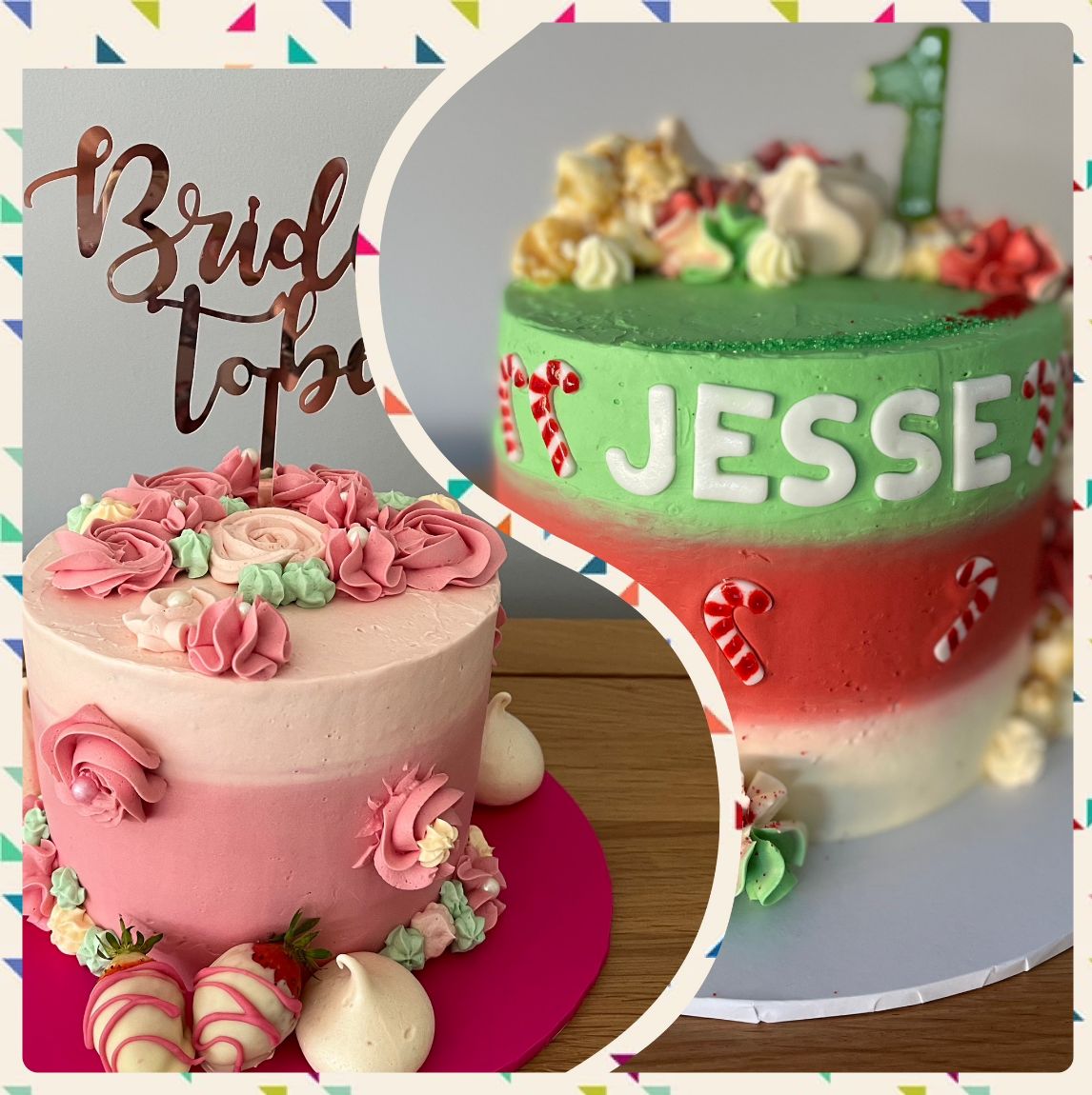 Ranging from 4, 6 to 8 inch cakes in either vanilla or chocolate sponge with a delicious Swiss meringue buttercream to match in flavour!